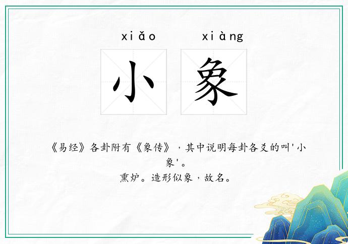 ⒈ 《易经》各卦附有《象传》,其中说明每卦各爻的叫“小象”。