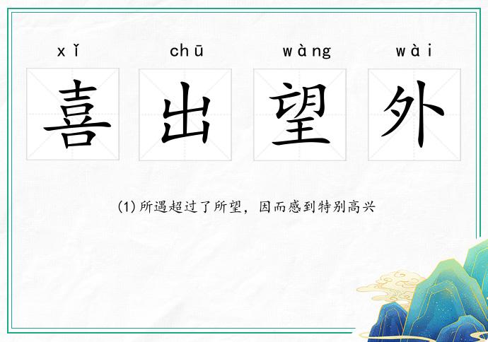 【解释】望:希望;意料。遇到意外的喜事;心中非常高兴。