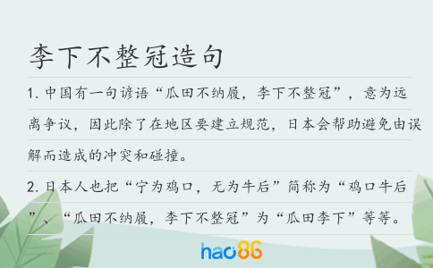 1、中国有一句谚语“瓜田不纳履,李下不整冠”,意为远离争议,因此除了在地区要建立规范,日本会帮助避免由误解而造成的冲突和碰撞。