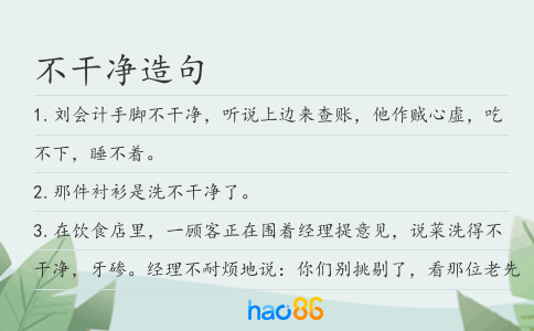 好查造句频道为您提供2025年的不干净造句相关内容,造句频道小编原创了94条的不干净造句内容,频道内容适合一二年级的小学生参考!!