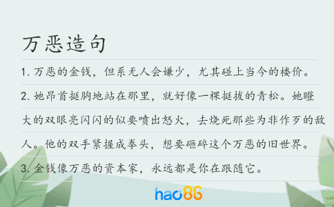 好查造句频道为您提供2025年的万恶造句相关内容,造句频道小编原创了112条的万恶造句内容,频道内容适合一二年级的小学生参考!!